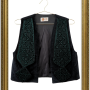 A luxurious black velvet vest detailed with deep emerald embroidery. Rich in texture and perfect for refined layering.